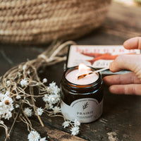 Confectionnée dans un pot de verre ambré duquel émane la plus douce des lueurs, les notes de bergamote, de bois de Hô et de citron de la Bougie Prairie riment avec calme & quiétude et rappellent l'odeur des hautes herbes en été.