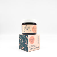 Ce baume a été formulé afin d'adoucir la période difficile que peuvent représenter les lunes. Débordant de plantes amies de l'utérus, dont le thé des bois, la sauge sclarée, le clou de girofle et l'extrait de cayenne, c'est du réconfort en pot, tout simplement.